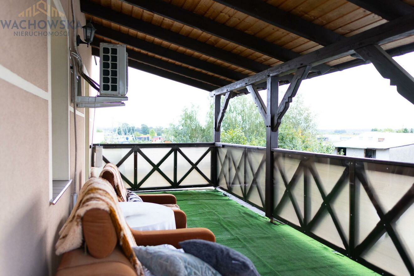 Duży, zadaszony taras (22 m) z wyjściem z jednej z sypialni.