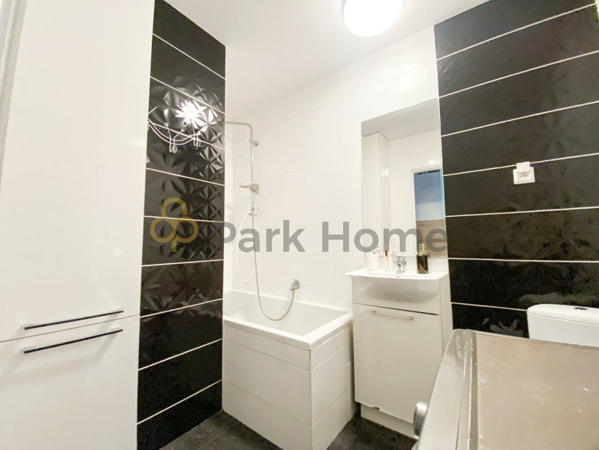 - Łazienka z wanną, WC, umywalką i miejscem na pralkę