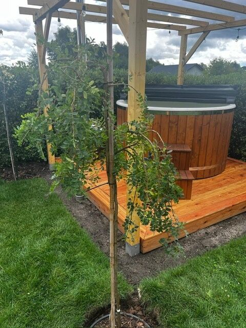 • Duży taras przylegający do ogrodu zimowego, jest idealnym miejscem na letnie grillowanie, poranną kawę lub spotkania z przyjaciółmi. Jest on wyposażony w duży drewniany stół z ławkami mieszczący 16 osób.